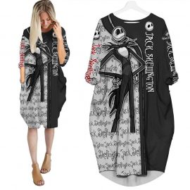 Jack Skellington Gray Pattern Disney Cartoon Summer Vacation Women Girl Batwing Pocket Dress LP40