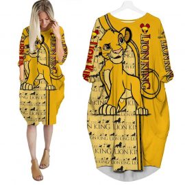 Lion King Simba Yellow Pattern Disney Cartoon Summer Vacation Women Girl Batwing Pocket Dress LP41