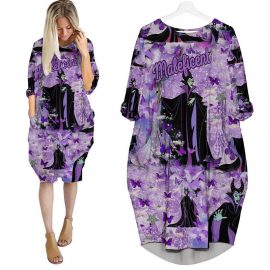 Maleficent Purple Butterfly Glitter Cute Disney Cartoon Summer Vacation Women Girls Batwing Pocket Dress LP22