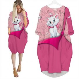 Marie Cat Pink Cute Disney Cartoon Summer Vacation Women Girls Batwing Pocket Dress LP6