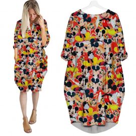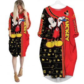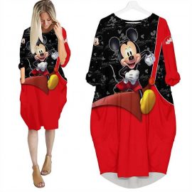 Mickey Mouse Red Pattern Disney Cartoon Summer Vacation Women Girls Batwing Pocket Dress LP43