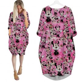 Minnie Mouse Pink Pattern Cute Disney Cartoon Summer Vacation Women Girls Batwing Pocket Dress LP24