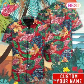 Personalized Detroit Red Wings Hawaiian Tropical Design Short Sleeve Special Jersey
