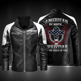 Personalized Leather Bomber American By Birth Christian By The Grace Of God