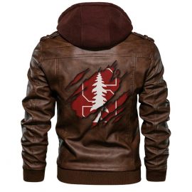 Stanford Cardinal NCAA Leather Jacket With Removable Hood