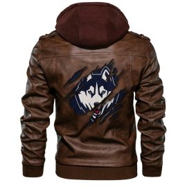Uconn Huskies NCAA Leather Jacket With Removable Hood