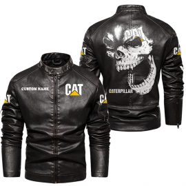 Caterpillar Personalized Racing Style Stand Collar Leather Jacket For Fan III