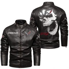Chevrolet Corvette Personalized Racing Style Stand Collar Leather Jacket For Fan I