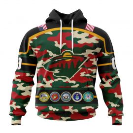 Personalized Minnesota Wild With Camo Team Color And Military Force Logo