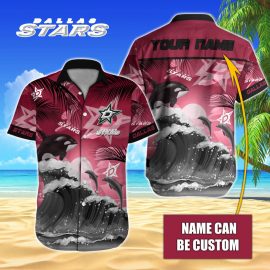 Personalized Dallas Star Special Hawaiian Orca And Waves Design Button Shirt