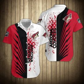 Arizona Coyotes White Red Half Bolt Design Hawaiian Button Shirt