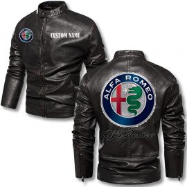 Alfa Romeo Personalized Unique Racing Style Stand Collar Leather Jacket Gift Idea For Fan I