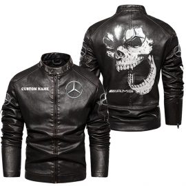 AMG Personalized Unique Racing Style Stand Collar Leather Jacket Gift Idea For Fan I