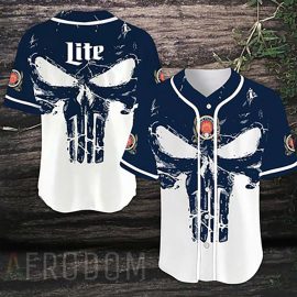 Gift For Him Gift For Husband Navy Skull Miller Lite Baseball Jersey