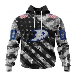 Personalized Anaheim Duck Grey Camo Military Design And USA Flags On Shoulder