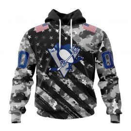 Personalized Pittsburgh Penguins Grey Camo Military Design And USA Flags On Shoulder
