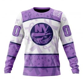 Personalized New York Islanders Lavender Fights Cancer Long Sleeve