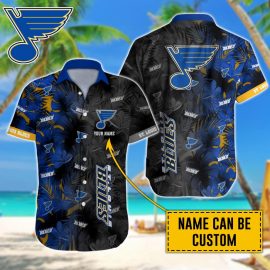 Personalized St Louis Blues Tropical Floral Hawaiian Design Button Shirt