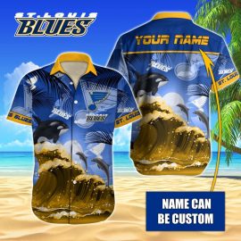 Personalized St Louis Blues Hawaiian Design Orca And Waves Button Shirt