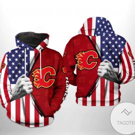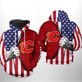Calgary Flames US FLag Team Pullover Jersey Zip Up Jersey For Men Women LP57