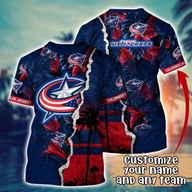 Columbus Blue Jackets Palm Tree Pattern Special Short Sleeve Unique Design