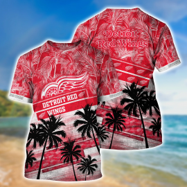 Detroit Red Wings Palm Tree Pattern Special Short Sleeve Unique Design Gift Idea