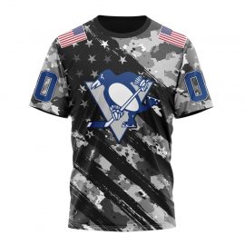 Personalized Pittsburgh Penguins Grey Camo Military Design And USA Flags On Shoulder