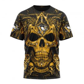 Personalized Pittsburgh Penguins Design With Skull Art Short Sleeve For Fan