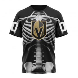 Personalized Vegas Golden Knights Skeleton Design For Halloween Short Sleeve