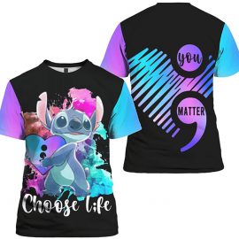 Suicide Awareness Colorful Stitch Disney Suicide Awareness Choose Life 3D T-Shirt