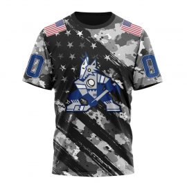 Personalized Arizona Coyotes Grey Camo Military Design And USA Flags