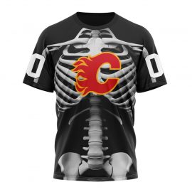 Personalized Calgary Flames Skeleton Design For Halloween Short Sleeve