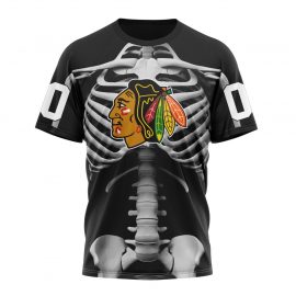 Personalized Chicago Unique Blackhawks Skeleton Design For Halloween Short Sleeve