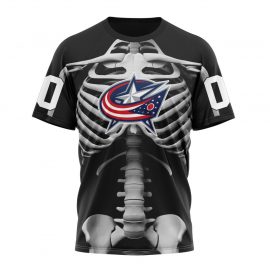 Personalized Columbus Blue Jackets Skeleton Design For Halloween Short Sleeve