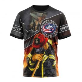 Personalized Columbus Blue Jackets Firefighter We Will Never Forget Tshirt