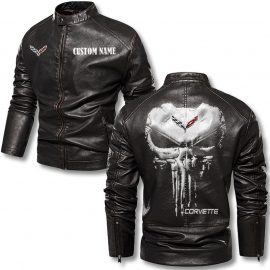 Custom Name Punisher Skull Chevrolet Corvette Personalized Leather Jacket Warm Jacket Winter Outer Wear