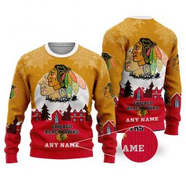 Personalized Chicago Unique Blackhawks Christmas Ugly Sweater Design Show Your Spirit
