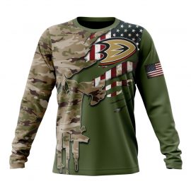 Personalized Anaheim Ducks Camo Color And Military Force Long Sleeve