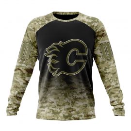 Personalized Calgary Flames Camo Design For Veterans Day Long Sleeve