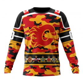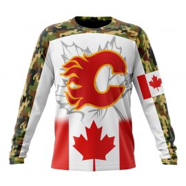 Personalized Calgary Flames Unique Camo Team Military Force Logo Long Sleeve