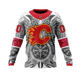 Personalized Calgary Flames Unique Dark Norse Symbols Long Sleeve