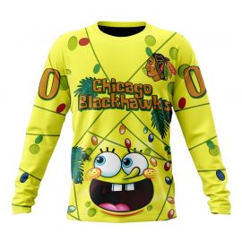 Personalized Chicago Unique BlackHawks Design With Spongebob Custom Jersey