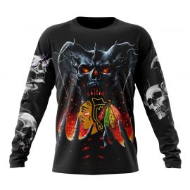 Personalized Chicago Unique Blackhawks Skull Art Design Long Sleeve