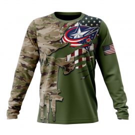 Personalized Columbus Blue Jackets Camo Skull Design Unique Long Sleeve