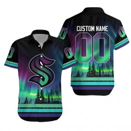 Personalized Seattle Kraken Design With Northern Lights Cool Button Shirt
