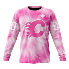 Personalized Calgary Flames Unique Special Pink Tie Dye Long Sleeve