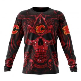Personalized Calgary Flames Unique Skull Art Design Long Sleeve