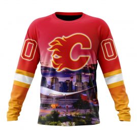 Personalized Calgary Flames Unique Special City Skyline Design Long Sleeve