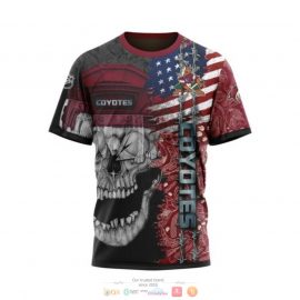 Arizona Coyotes Custom Name Red Us Flag Skull Design Unique Short Sleeve