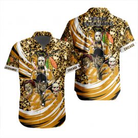 Chicago Unique Blackhawks Design For Halloween Short Sleeves Button Shirt